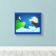 Ilustração fantástica de um navio voador em pouso. Arte digital