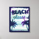 Impressão Em Tela Neon Tropical Beach Wood Vacing Palm Trees