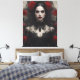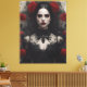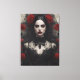 Uma noiva gótica em seu vestido de noiva preto cercado por rosas vermelhas está pronta para seu casamento no dia das bruxas. Arte gerada por IA