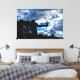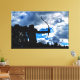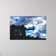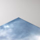 Homem com flecha e arco em silhueta com árvores ao fundo, céu azul e nuvens