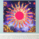 "Fogo Dançante do Cosmos" O Sol. As espirais hipnóticas e as explosões de ouro do Sol dão a ilusão do movimento, como se as chamas solares estivessem vivas. Uma intrincada obra-prima celebrando energia, calor e equilíbrio celeste com cores vermelha, laranja, amarela e azul.