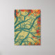 Trabalho de arte representando uma árvore sobre um fundo ouro com tronco verde e folhas de laranja vermelho. Esta trabalho de arte simboliza o valor inestimável das árvores para a vida na Terra.