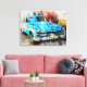 Ein blauer Oldtimer in Havanna auf Kuba in Aquarell