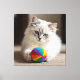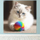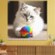 Preencha sua casa com alegria com esta imagem de um gatinho branco de olhos azuis brincando com uma bola de arco-íris. Um toque de fofura e energia para alegrar qualquer espaço e conquistar corações com seu charme delicado.