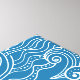 Um intrincado giro e onda são misturados em diferentes tons de blues. Círculos grandes e pequenos azuis rodeados por espirais maiores.