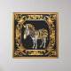 A zebra sobre uma Dourada e Negra Moldura Ornamental captura a essência da natureza com seu retrato de zebra impressionante. Colocada contra um pano de fundo de preto rico e ouro cintilante, esta design adiciona um toque de elegância inspirada em safari ao seu presente.