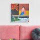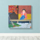 mulher em kimono senta-se em tatami e coça uma colcha enquanto aproveita a vista das folhas de outono em seu jardim