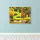 Esta impressão de canvas de belas artes apresenta um adorável dia sazonal de outono. As árvores são brilhantemente coloridas com folhagem em queda de cor vermelha, laranja, amarela, dourada, verde e marrom. Duas bancadas observam uma lagoa bonito com reflexões de água. Dê um passeio por este parque colorido nas colinas de Ithaca, na região dos Grandes Lagos do norte de NY.
