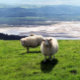 Fotografia de ovelhas de montanha com vista sobre o estuário de Dyfi. País de Gales, Reino Unido.