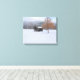 neve coberta de pinca com galpão e árvore cercada por floresta