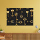 Padrão perfeito de chaves antigas, douradas e silhuetas em fundo preto.