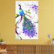 Canvas da Galeria de Três Painéis - Fantasy Peacock com flores para penas de cauda todas em um fundo malhado vintage. Altere a cor de fundo para um efeito diferente, tenho-a definida para um fundo branco