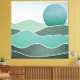 Esta paisagem de fantasia está em lindas camadas texturizadas e tons de turquesa e aqua com sol e colinas e montanhas.