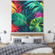 Um exuberante reino, de outro mundo, com folhas tropicais vibrantes, pintadas em delicadas aquarelas, forma uma intrincada tapeçaria de verdes ricos e matizes vívidas.