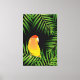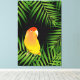 Esta vibrante pop de um papagaio de pássaro amarelado e laranja (Agapornis Roseicollis) adiciona alegria à decoração da sua casa, ou a uma surpreendente obra de arte de parede para o seu escritório. O pássaro amarelo brilhante se destaca em relação às folhas de palmeiras verdes e ao fundo preto dessa tela artística. Negrito e alegre, este impressão único desenhar o olho de amantes de aves e sonhadores tropicais.