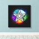 Pentagrama luminoso desenhado artificialmente com cinco elementos mágicos, água, terra, fogo, astral, ar sobre fundo negro. Pentagrama Wiccan. Wicca