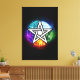 Pentagrama luminoso desenhado artificialmente com cinco elementos mágicos, água, terra, fogo, astral, ar sobre fundo negro. Pentagrama Wiccan. Wicca