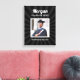 A arte moderna da canvas negra mostrará seu formando por anos. Design apresenta uma foto quadrada do formando em branco com nome simples e clássico, ano de aula e texto de nome escolar que pode ser personalizado. Inclui um padrão sutil de explosão de estrelas. A cor preta de fundo pode ser modificada para coordenar com cores escolares ou fotográficas.