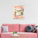 Cute pictures and text with watercolor flowers on pink watercolor background