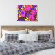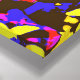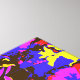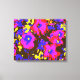 Um vibrante design azul, roxo, vermelho, amarelo e preto pop de petúnias.