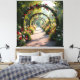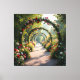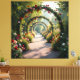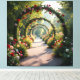 Ein zauberhafter Gartenweg, gesäumt von prachtvollen, taufrischen Rosen in Rot, Gelb, Rosa und Violett, die im goldenen Licht der aufgehenden Sonne leuchten. Diese Szene symbolisiert Frieden, Schönheit und die Magie der Natur – ein Ort zum Träumen und Verweilen.