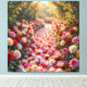 Ein zauberhafter Gartenweg, gesäumt von prachtvollen, taufrischen Rosen in Rot, Gelb, Rosa und Violett, die im goldenen Licht der aufgehenden Sonne leuchten. Diese Szene symbolisiert Frieden, Schönheit und die Magie der Natur – ein Ort zum Träumen und Verweilen.