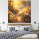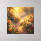 Ein zauberhafter Gartenweg, gesäumt von prachtvollen, taufrischen Rosen in Rot, Gelb, Rosa und Violett, die im goldenen Licht der aufgehenden Sonne leuchten. Diese Szene symbolisiert Frieden, Schönheit und die Magie der Natur – ein Ort zum Träumen und Verweilen.