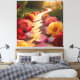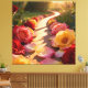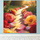 Ein zauberhafter Gartenweg, gesäumt von prachtvollen, taufrischen Rosen in Rot, Gelb, Rosa und Violett, die im goldenen Licht der aufgehenden Sonne leuchten. Diese Szene symbolisiert Frieden, Schönheit und die Magie der Natur – ein Ort zum Träumen und Verweilen.