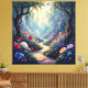 Ein zauberhafter Gartenweg, gesäumt von prachtvollen, taufrischen Rosen in Rot, Gelb, Rosa und Violett, die im goldenen Licht der aufgehenden Sonne leuchten. Diese Szene symbolisiert Frieden, Schönheit und die Magie der Natur – ein Ort zum Träumen und Verweilen.