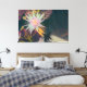 A close-up captures a water lily with pale lavender petals and a yellow center, surrounded by lily pads in a pond. The lily's reflection is visible in the water, creating a symmetrical effect. The lily pads feature a mix of brown and green hues, adding depth to the composition. The water's surface reflects the surrounding light, enhancing the serene atmosphere.