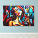 pintura abstrato de mulher desfrutando de vinho numa canvas esticada