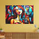 Impressão Em Tela pintura de abstrato de mulher desfrutando de vinho
