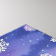 Uma mãe urso polar e seus dois filhotes estão sentados em um banco coberto de neve em frente a um lago congelado. Os pinheiros cobertos de neve alinham o fundo sob um céu noturno cheio de luzes Nortes. Várias pequenas aves descansam nas margens de neve do lago. O reflexo dos ursos e os nadadores aurora borealis na água.