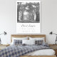 A fotografia a preto e branco apresenta uma pequena linha rodoviária com ciprestes costeira no Mar Nacional de Point Reyes numa manhã nebulosa.