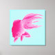 Um peixe dourado cor-de-rosa num bloco de cor sólida azul. Uma grande imagem de um peixe para colorir suas paredes ou como um presente exclusivo.