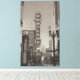 Um sinal de estilo vintage de Portland, Oregon, teatro com letras brancas é alto contra um céu azul brilhante. O sinal está anexado a um edifício de tijolos com uma marca abaixo mostrando a informação do show. A cena é colocada numa rua da cidade com uma faixa de pedestres, luzes de ruas e carros estacionados ao longo da rua.