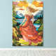 Esta vibrante trabalho de arte de vidro manchado representa uma bela mulher em um ornamentado, vestido fluente, seu cabelo comprido graciosamente enquanto ela se posiciona em uma paisagem rochosa. A mulher parece estar a olhar para uma vista de tirar o fôlego que inclui montanhas majestosas, um lago sereno e um céu dramático. O trabalho de arte é rico em detalhes, com painéis ousados e coloridos criando um contraste dinâmico entre a figura e a cena natural. O efeito do vidro manchado melhora a beleza da paisagem e a elegância da mulher, fazer-o perfeito para uma poster ou obra de arte que irradia beleza e tranquilidade.