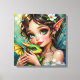 Fairy Tale themed canvas wall art. A pretty anime fairy holding her cute baby dragon. A beautiful fairy tale vibe in an enchanted setting ethereal art.