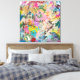 Uma explosão de cores e abstrato cria uma composição vibrante e caótica. Vários golpes e pinceladas evocam uma sensação de espontaneidade e energia.