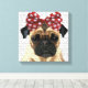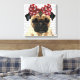 Impressão Em Tela Pug com Arco vermelho na cabeça