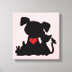 Impressão Em Tela Puppy e Kitten Silhout Rosa
