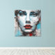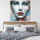 Impressão Em Tela Quadro abstrato rosto de mulher azul, cinza, red