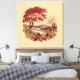 Modern contemporary Quilling design Canvas print featuring a Countryside in Autumn with red leafy trees, autumnal coloured flowers on a backdrop of sandy rolling hills.