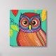 Impressão Em Tela Quirky Colorful Folk Art Abstrato Owl