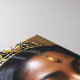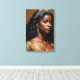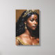 Esta arte canvas apresenta o trabalho de arte real de uma elegante, bela princesa de pele escura ou rainha vestindo ouro e preto com uma tiara joalhada. Uma imagem típica do estilo de pintura a óleo com muita melanina! Esta espantosa mulher real é da diáspora africana. Ela tem cabelos longos e ondulados e epitomiza classe e luxo.
