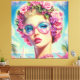 Uma ilustração digital captivante de um retroglame de uma mulher na moda que veste óculos de sol cor-de-rosa e uma coroa floral vibrante. Cercado por céus tropicais, palmeiras e veleiros, este trabalho de arte sonhador expele a elegância vintage da praia e o encanto de alta moda. Perfeito para produtos Redbubble como posters, capas de telefone, roupa e adesivos, ele traz cores, beleza e vibrações de verão ousadas para qualquer coleção.