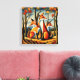 Três raposas por baixo das folhas que mudam no dia ensolarado do outono