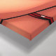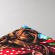 Bela pop de uma bela praia, no verão, com o tema Canvas Print. Um desenho animado do estilo dos quadrinhos ilustra uma mulher em um biquíni vermelho de bolinhas, bandana e óculos de sol.