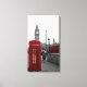 Caixa telefônica vermelha, preto e branco de Londres, olhando para a Ponte Big Ben e as casas do Parlamento pela Praça do Parlamento e um ônibus de transporte Red London