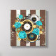 Impressão Em Tela Relógio e Rosas de Turquesa em Striping